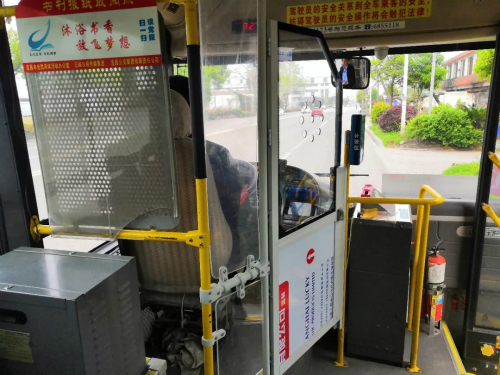 公交车上的乘客说:“这个装置对驾驶员能起到很好的保护作用,驾驶员安全操作了,我们乘客坐车才放心。”