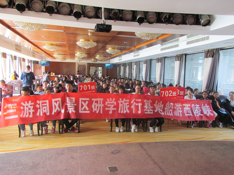 随后,孩子们登上了长江三峡7号游船,体验“船过峡口波出静,水下夷陵浪始平”、“峡尽天开朝阳日出,山平水阔大城浮”的意境。紧接着观摩了陈毅题词与神秘的“悬棺”。