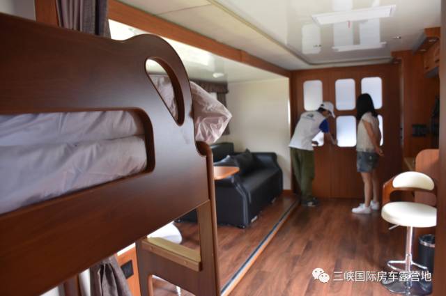 房车内部家具和电器等设施配置齐全,颇有种麻雀虽小、五脏俱全的感觉。