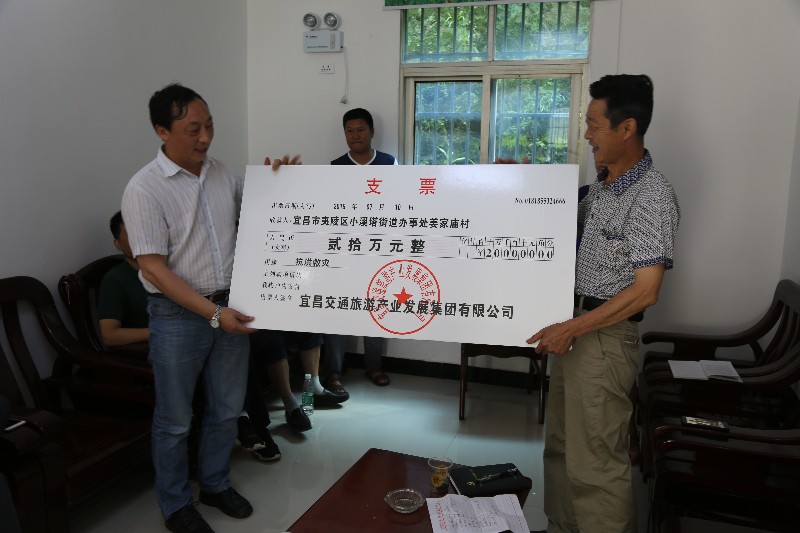 7月10日上午,宜昌交旅集团总经理鲍希安一行受董事长柳兵委托,来到夷陵区小溪塔街道姜家庙村,为该村捐赠“抗洪救灾”爱心款20万元,帮助该村抵御洪涝、重建家园。