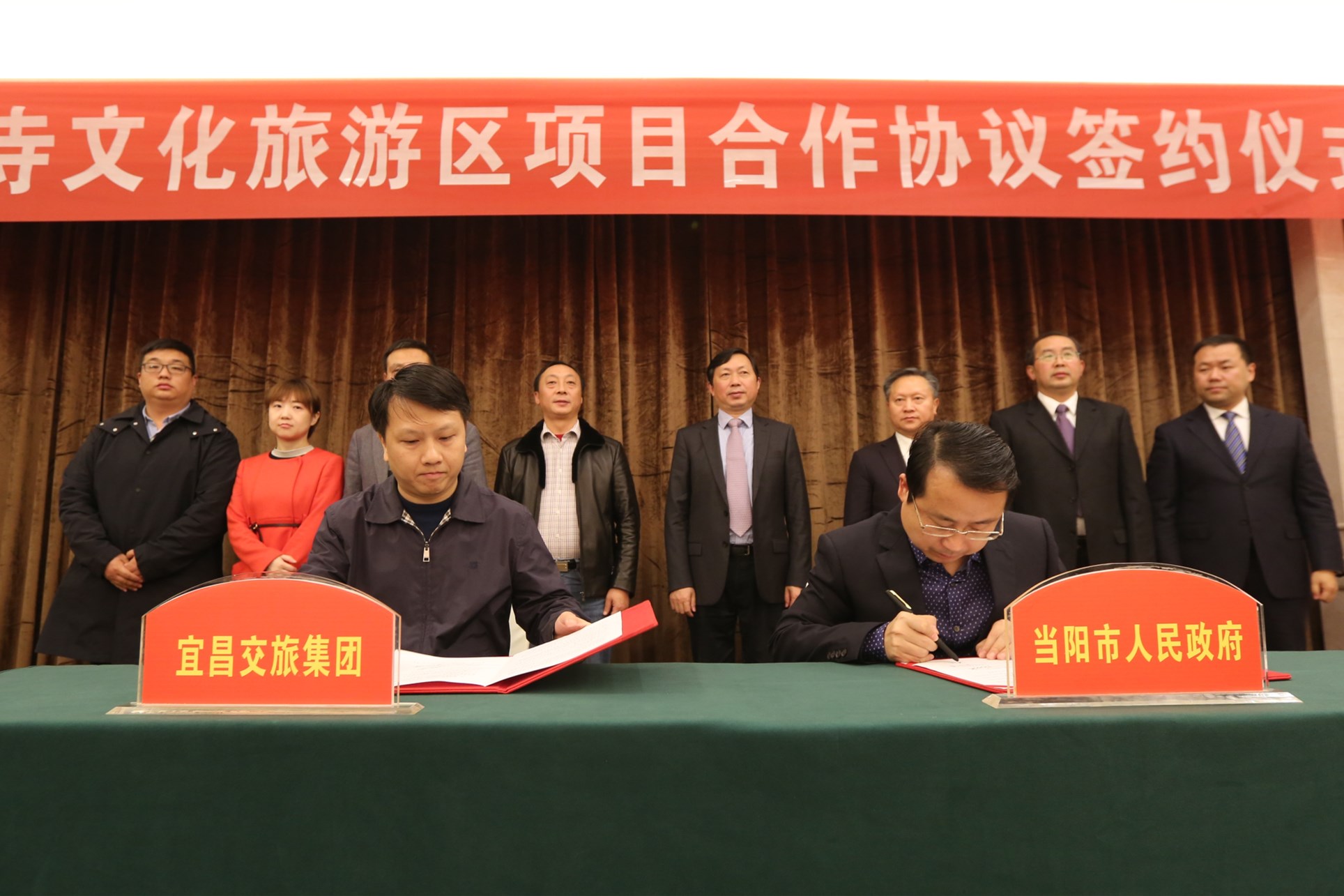 11月15日,宜昌交旅集团与当阳市人民政府在当阳市举行签约仪式,双方将合作开发玉泉寺文化旅游区项目。当阳市委副书记、市长张世敏,市委副书记叶永清,市人大常委会主任卢景,市政协主席孙照玉等当阳市领导,交旅集团党委书记、董事长苏海涛,党委副书记、总经理鲍希安,副总经理王精复等出席签约仪式。