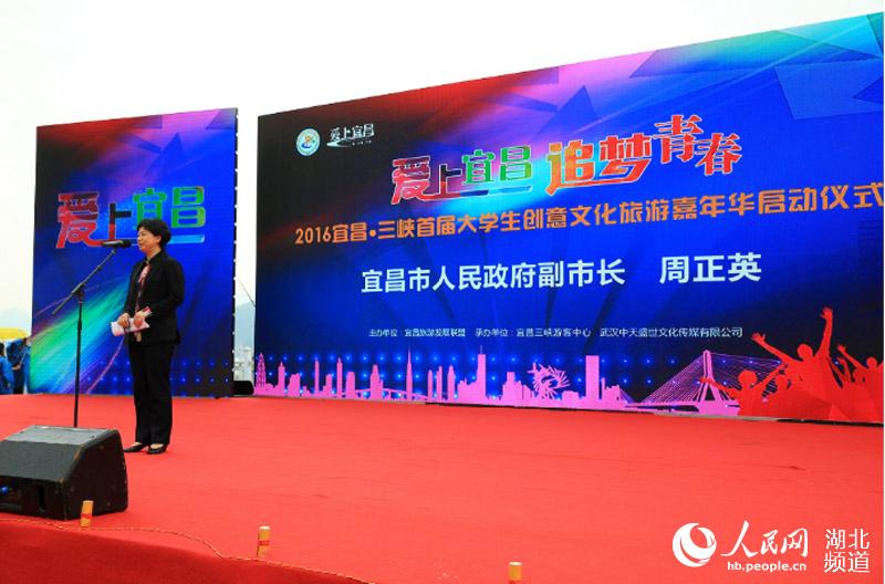 人民网武汉5月21日电20日,2016宜昌·三峡首届大学生创意文化旅游嘉年华暨大学生游宜昌活动在宜昌三峡游客中心盛大开幕。华中六省大学生与留学生代表,以及从全国各地赶来参加“5201314”的大学生情侣们,在长江江畔共同求爱开启了为期半年的大学生嘉年华活动序幕。