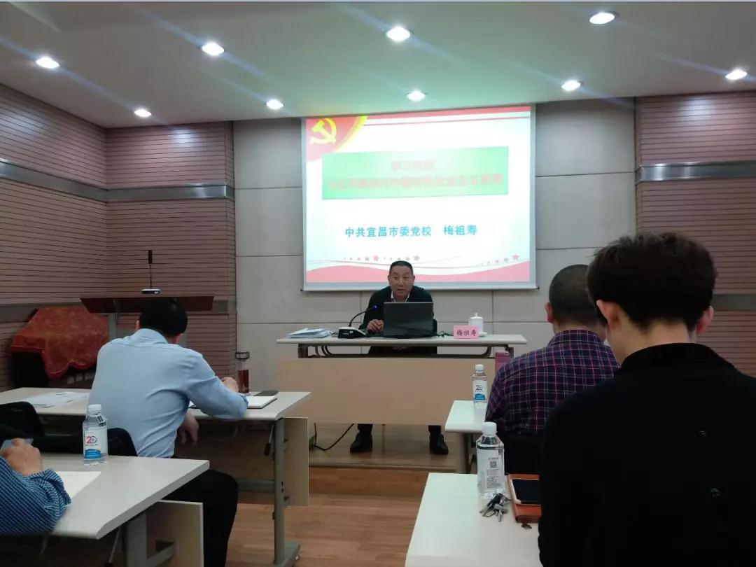 4月17日,宜昌交运集团举办“习近平新时代中国特色社会主义思想解读”讲座。邀请宜昌市委党校马克思主义理论教研室主任梅祖寿教授进行专题辅导。梅教授从“明确新思想的重大意义和深远影响”、“把握新思想的基本观点和科学体系”、“坚持运用新思想指导实践和推动工作”等三个方面,系统深入地阐述和解读了新思想的主要内容。从理论深度、政治高度、实践厚度上引导大家全面深刻地认识和理解了新思想的精髓要义。