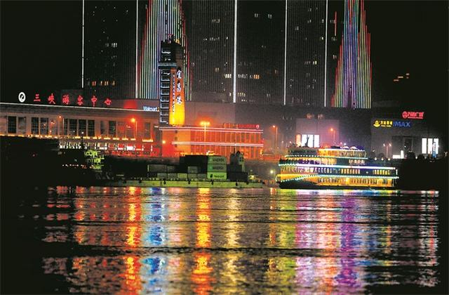 华灯初上夜未央,夜色中的宜昌灯火阑珊。乘船夜游长江会是怎样一番感受?在简短的首航仪式后,随着游船缓缓驶出码头,沿江两岸的夜色映入眼帘。