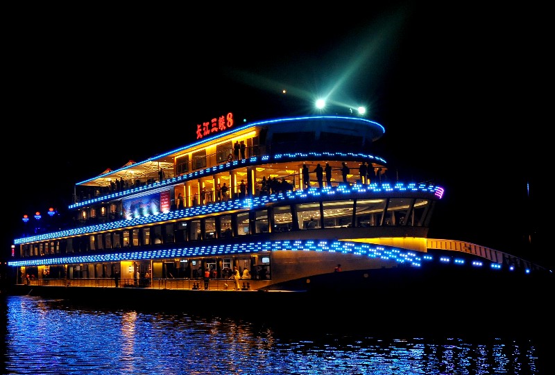 据悉,“交运*长江夜游”产品以游客乘船观赏宜昌城区两岸夜色风光,体验夜晚乘船过“长江第一坝”——葛洲坝水涨船高的独特感受为主要体验项目。而作为夜游重要载体的“长江三峡8号”游轮,宽敞舒适,功能完善,全长87米,型宽14.4米,排水3000吨,核载1000人,共分为四层,包括观光甲板、餐厅、茶吧、酒吧、豪华包房、多功能厅等,能满足您餐饮、娱乐、休闲、会务等不同需求。同时,船上还将聘请乐队驻场,以非同凡响的视听盛宴为游客带来耳目一新的旅游休闲体验。