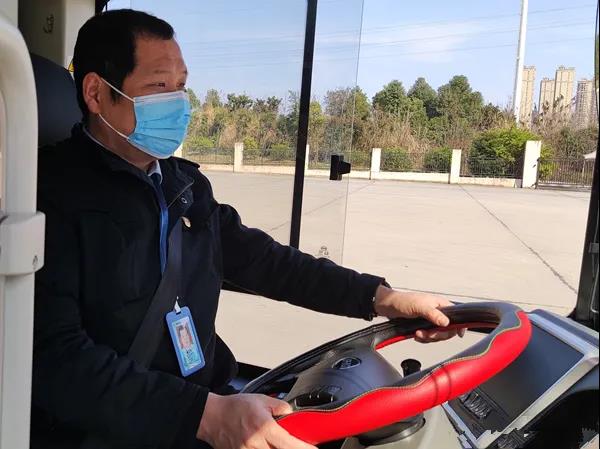 43岁的曾庆许是一名公交车驾驶员,已工作21年了,几乎每年春节他都坚守在岗位上。“请乘客扫码乘车,正确佩戴口罩。”每到一个站点,他都会反复提醒上车乘客注意防疫安全。