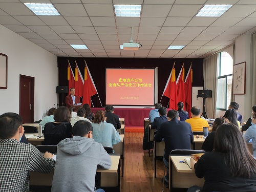 5月18日,宜港资产公司党总支组织召开全面从严治党工作推进会,公司党总支书记、总经理李南出席会议并讲话,纪检委员、工会主席李蓉主持会议。