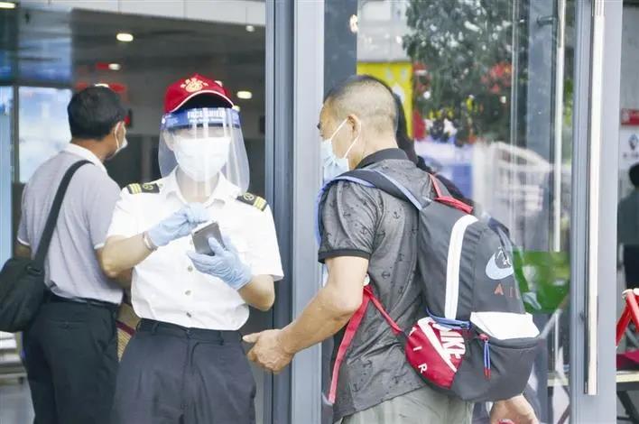 8月3日,宜昌汽车客运中心站严格落实新冠肺炎疫情防控要求,对旅客进站、出站两个通道进行严密管控,安排专人协助旅客完成扫码、安检等工作,为广大旅客提供出行便利。(三峡日报全媒记者 黄翔 实习生 宋劲松 摄)