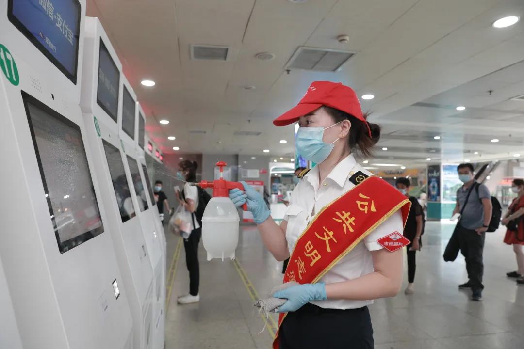 站场、车辆每日进行严格消杀2次,与旅客接触频次高的设施设备增加消杀频次。进站口、服务台均配备消毒啫喱、消毒湿巾,电梯内装置手指消毒液,加强旅客自身健康防护。
