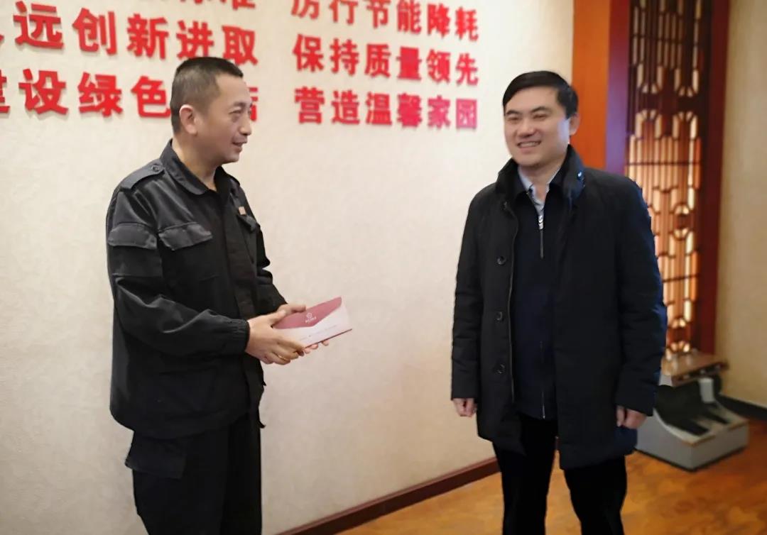 1月28日,徐强前往猇亭区看望长期坚守在供水安装一线,生活中独自照顾孩子和母亲的基层员工代文华。勉励他努力工作、认真生活,遇到困难及时向组织反映。叮嘱随行人员关心关爱困难职工,把党的政策和组织的温暖送到职工的心坎上。建投水务公司总经理闫尉文参加慰问。