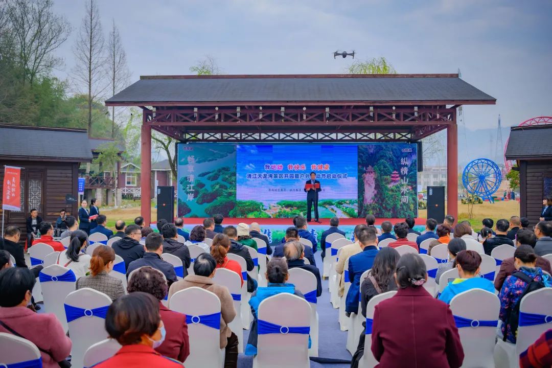 柏松、蒋小丹、殷俊、柯新宇共同启幕,开启清江天龙湾户外运动新篇章。300余名市民游客代表共同游园,“打卡”水上飞人、摩托艇表演,体验绝壁攀岩、山地高尔夫休闲,在山水之间畅享运动魅力、点燃城市活力。