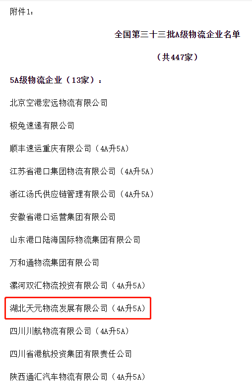 自2013年成功申报AAAA物流企业以来,天元物流锐意进取、奋发有为,经过8年经营磨砺,历经筹备、申报、评审、答辩工作,成功实现4A升5A!