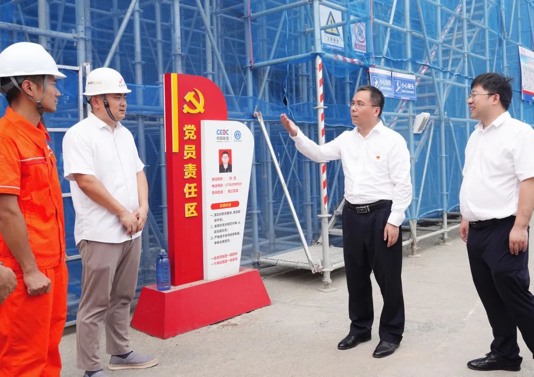抵达合益路(东山大道-沿江大道)市政工程项目施工现场已是下午5时,近100名工程建设人员鏖战正酣。走进施工现场,“党员责任区”映入眼帘,殷俊上前与基层党员问好,详细询问项目建设中遇到的问题与困难。叮嘱大家注意防暑降温,落实安全防护措施,确保项目建设按期推进。要求参建各方围绕基层堡垒共筑、党员队伍共育、廉洁工程共建,将党的建设贯穿项目建设全过程,让党旗在工地高高飘扬。
