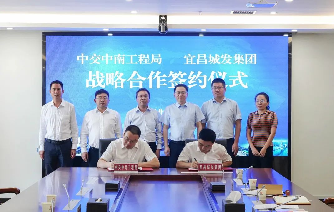 7月12日,中交中南工程局与宜昌城发集团签订战略合作协议,双方将在股权合作、战略投资者引进、混合所有制改革、城市片区综合开发、交通基础设施建设等领域开展深度合作。中交中南工程局有限公司总经理彭正勇,宜昌城发集团党委书记、董事长殷俊见证签约并讲话。中交中南工程局有限公司副总经理任祥瑞,宜昌城发集团党委副书记、总经理徐强分别代表双方签订战略合作协议。