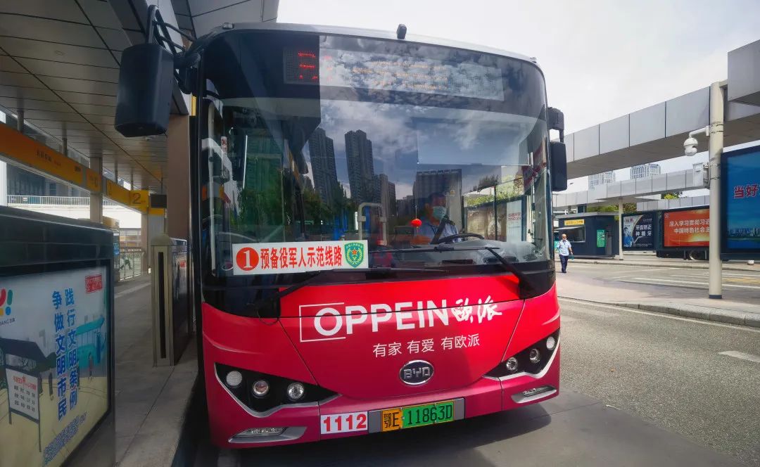 话音刚落,一辆B1路公交车缓缓驶进站台,挡风玻璃前的“预备役军人示范线路”几个字格外显眼。