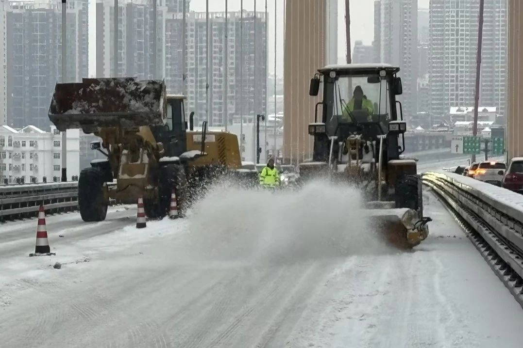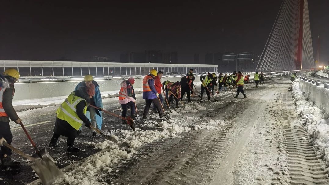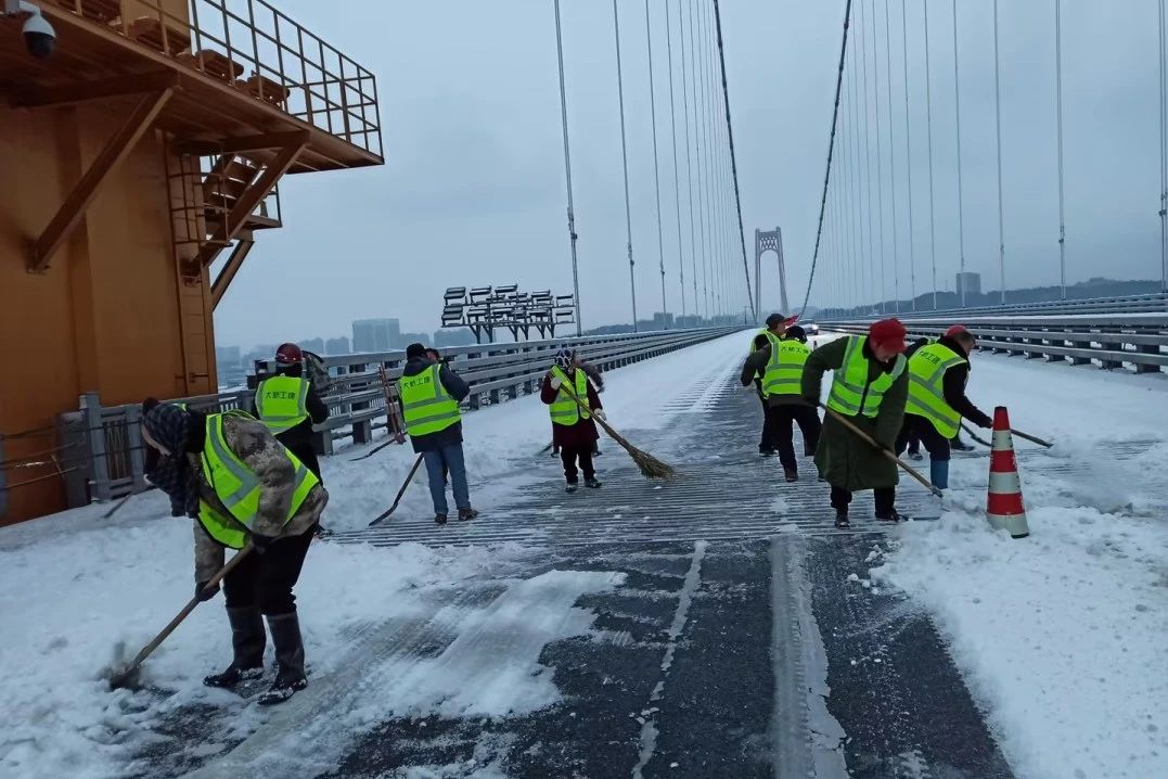 自2月2日发布道路结冰橙色预警以来,大桥集团已连续作战60小时。200台次装载机和自卸车辆,1500余人次干部职工连续“作战”,10吨融雪剂、10吨碎石融冰冻……他们抗冰雪、护民安,确保至喜、伍家岗、夷陵和宜昌桥等四座长江大桥安全通畅,保障一江两岸人民群众出行平安。