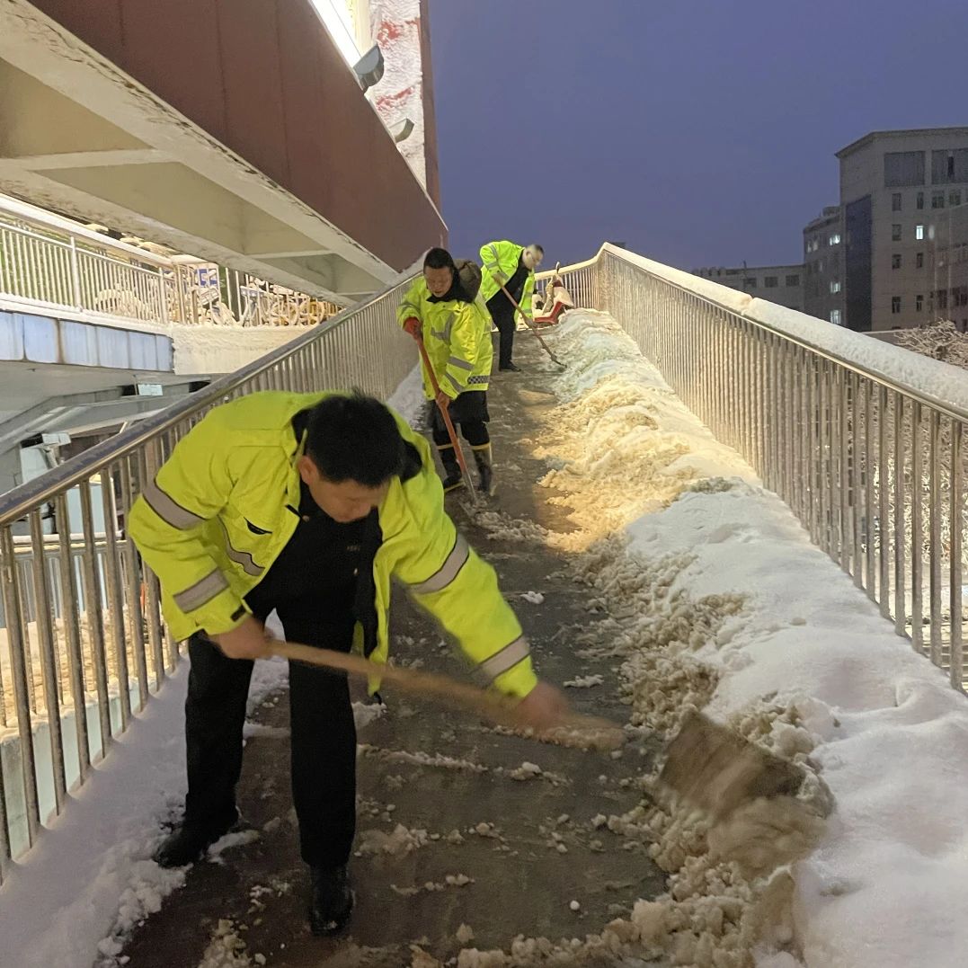 2月3日至4日清晨,得知服务辖区市二医院、宜昌东站广场、市规划展览馆等重点场所积雪及路面结冰情况较为严重,城投物业公司主动组织干部职工开展“扫雪除冰”行动,为市民游客就医、出行、游览安全再添保障。