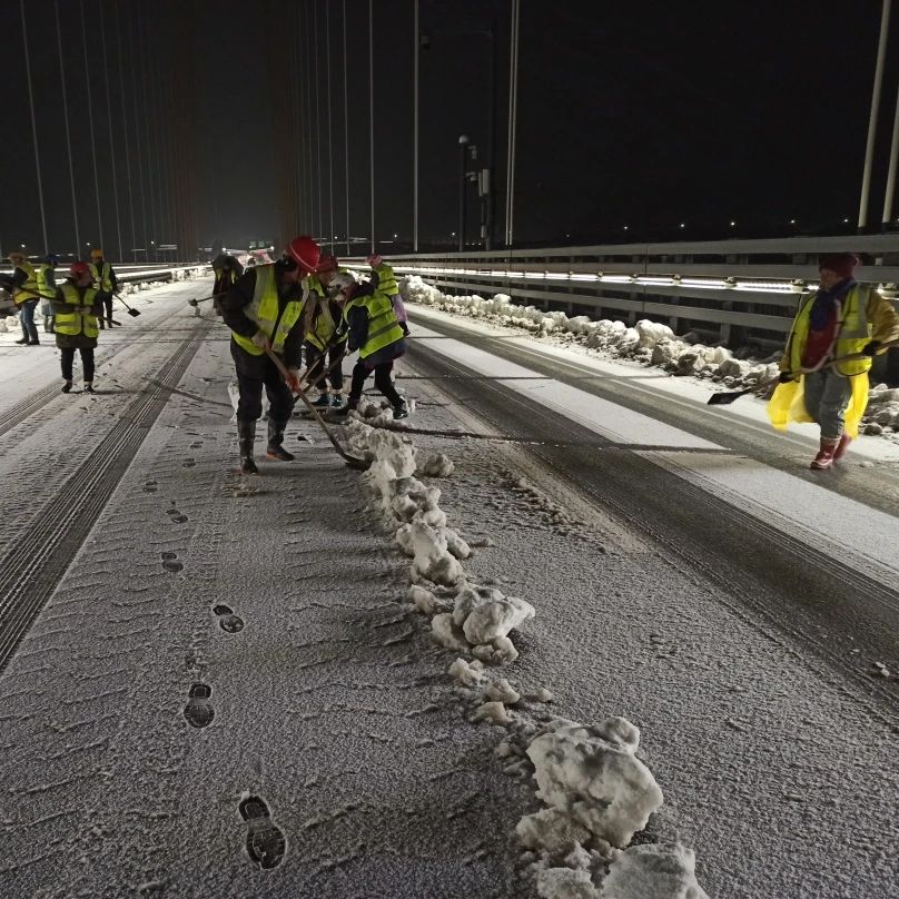 直至次日下午两桥行车道冰雪清除