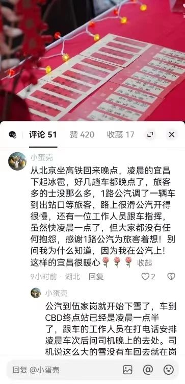 “1路驾驶员暖心守护动车延迟旅客回家路。”这是一位北京返宜乘客在抖音视频上的留言。