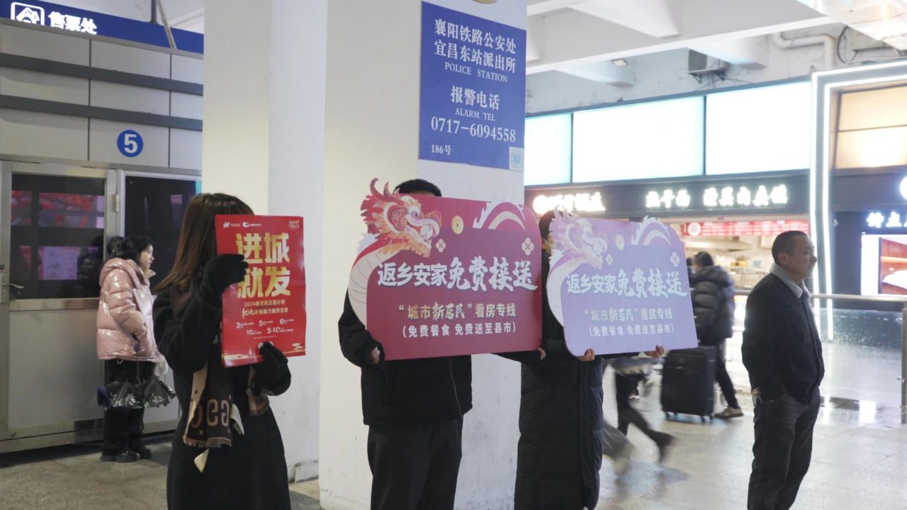 2月2日,宜昌城发集团在宜昌东站、三峡机场开通“返乡人员置业安家直通车”,以奉上一杯热茶、看一套家乡新房、吃一顿暖心家宴、带一份置业大礼包、送老乡回家的形式,为返乡游子送上家乡的祝福与温暖。