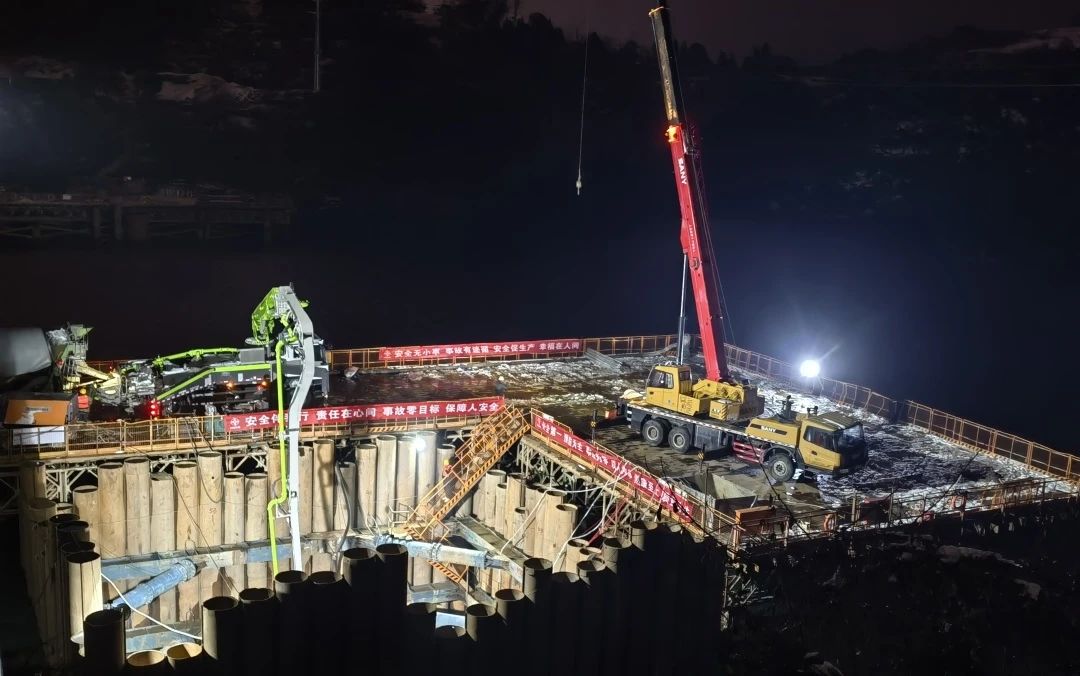 2月5日凌晨,由大桥集团桥投公司新建的黄柏河大桥主墩首个承台大体积混凝土顺利浇筑,新建右幅桥梁正式进入水上施工阶段。