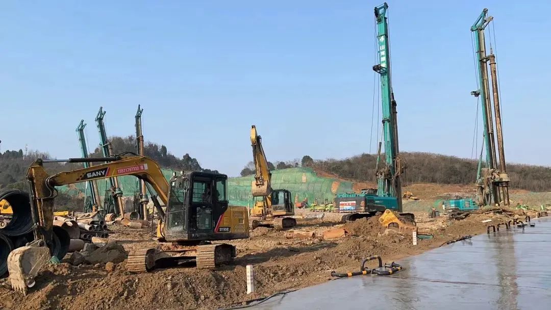2月14日,十里红培训接待中心项目春节不停工,现场忙似火。现场挖机、渣土运输车、旋挖桩机等120余台设备机器轰鸣,200余名施工人员正在有序作业。