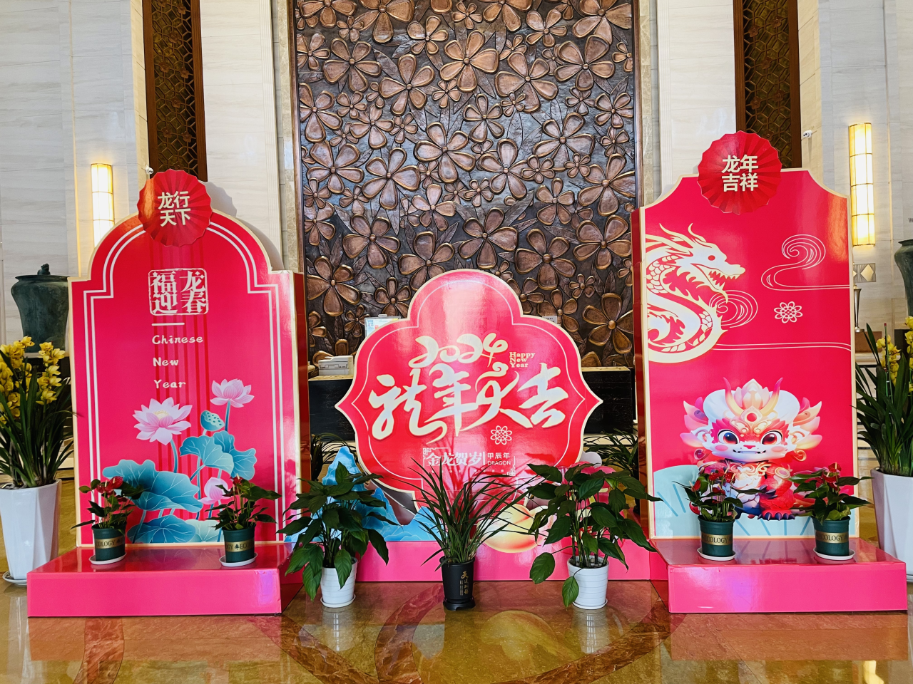 制定“龙”年主题迎宾墙、悬挂新春灯笼