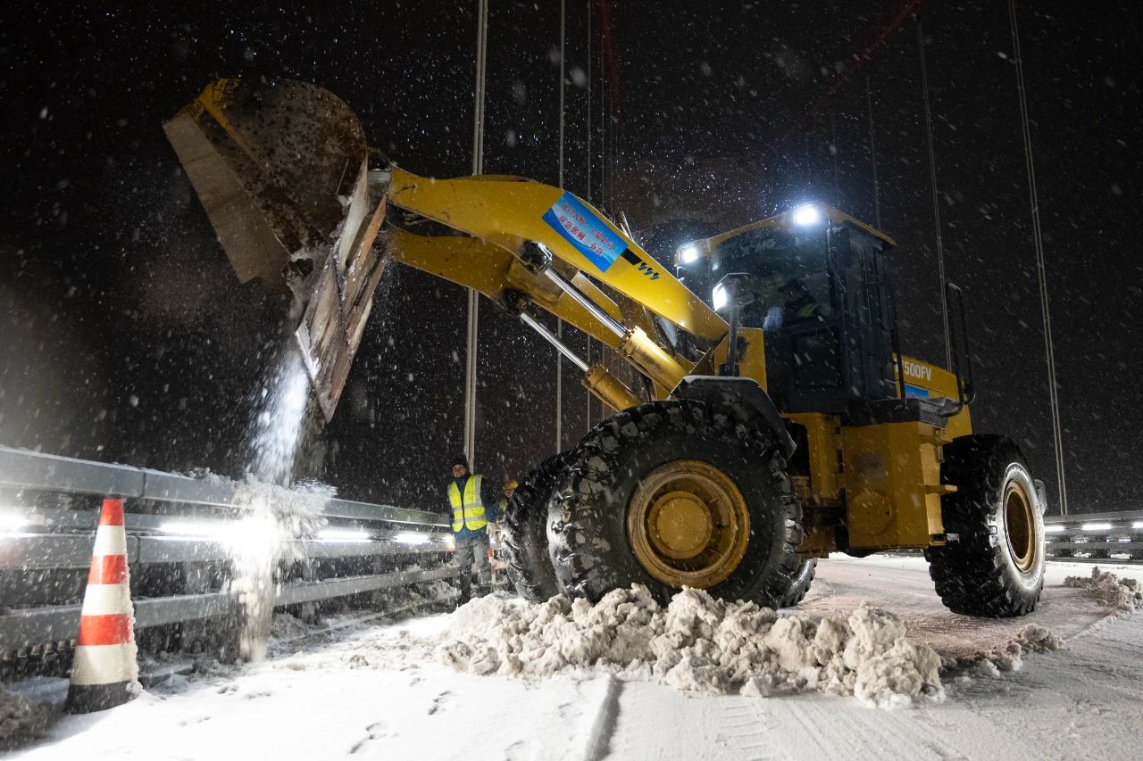 我们按照“组织到位、责任到人、机具到件、物流到量、人员到岗、关键到点、措施到项”工作要求,做到“人停机不停、即下即清、雪停路清”。我们克服了钢桥面不能抛洒融雪剂、专业除雪设备匮乏的困难,“机械+人工”日夜奋战。我们每天研判雪情、制定工作方案,实施一桥一策,高效指挥调度,第一时间进驻监控中心,全天候24小时调度指挥。我们做到除雪与保畅两不误,夜晚封道除雪,早7点全面开放交通。我们众志成城、日夜不休,全力以赴保畅通,连续两次获市政府通报表扬。