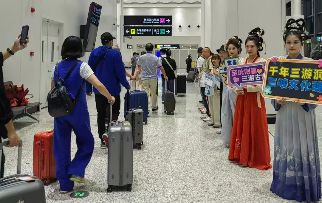 暑期以来,西陵峡风景区平均每周接待泰国、越南的包机游客约500人。