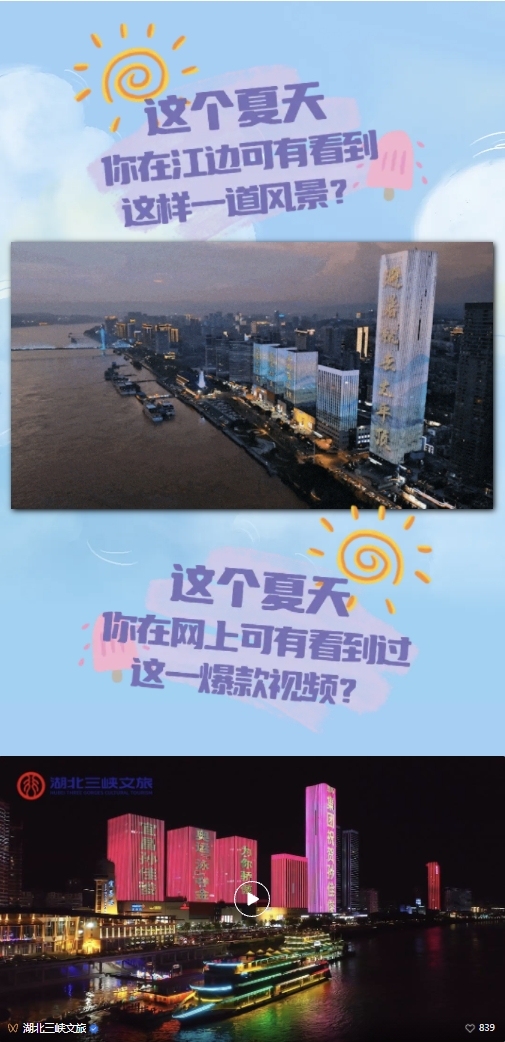 醒目的动画设计、强烈的视觉冲击和清晰直白的宣传标语,不仅人群的目光,将最直接、最符合游客需求的品牌形象植入游客心中,同时也向五湖四海的游客发出热烈邀约:“这个夏天,来宜昌很City!”。