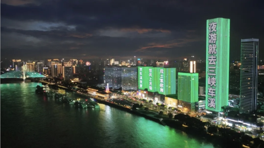 这个夏天,漫步在夏季纳凉人流量最集中的滨江路段,最“City”的就是在伍家岗万达、宜昌国际广场、福江铭座三座地标建筑上循环播放的景区宣传语。
