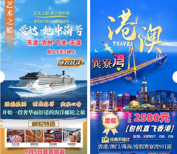 今年独家策划的《爱达-地中海号》海洋豪华邮轮包位销售项目收客效果良好,游轮9月5日将从天津国际邮轮港出发,行程天数共计8天;10月,海峡国旅独家包机将带领游客飞往香港参加演出和比赛,通过“演出+旅游”的新颖模式,引领出游新风尚。