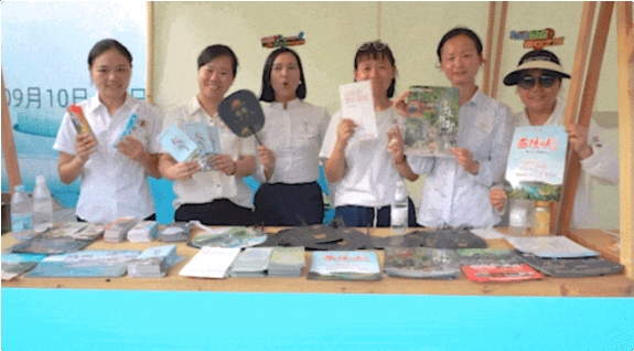 海峡国旅工作人员化身导游,倾情推荐宜昌旅游资源,吸引了不少粉丝主动到展位上咨询领取旅游产品资料和小礼品。