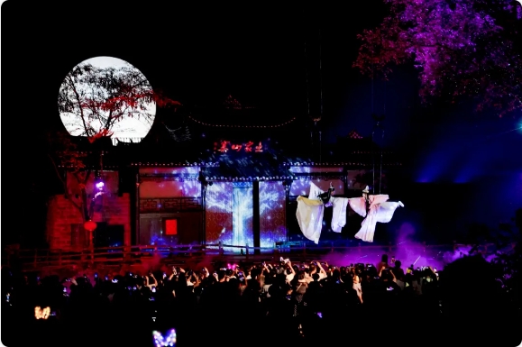 晚上:前往车溪景区感受梦回车溪夜游风情,参与寻找嫦娥、体验古时市井烟火气等活动。观看嫦娥仙子翩翩起舞,感受天上宫阙的绝美舞姿。参与汉服巡游放河灯,许下中秋心愿。