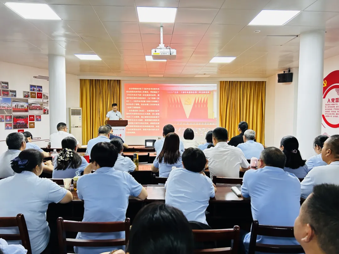 2024年9月,峡州集团党委班子成员积极下沉各分管领域和联系点党支部参加“主题党日”活动,专题宣讲党的二十届三中全会精神。各领导班子紧贴企业发展实际,围绕《中共中央关于进一步全面深化改革推进中国式现代化的决定》提出的目标任务、重大举措等多个方面作了宣贯讲解,为全体党员管理干部准确把握、全面贯彻全会精神带来了新的启示。与此同时,全体党员纷纷表示,将以此次宣讲为契机,进一步深入学习贯彻党的二十届三中全会精神,以实干实绩谱写转型发展新篇章。