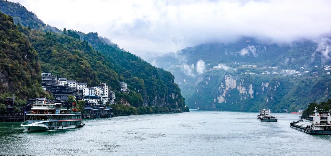 到达中国十大风景名胜之一长江三峡的西陵峡段,正好下了一场秋雨,沿途两岸奇峰陡立、青山连绵,隐在云雾中,如一副水墨山水画。云销雨霁,江面平静如镜,独特的山水风光和丰富的文化故事,令人不禁驻足,美不胜收的“中国风”在此具象化。