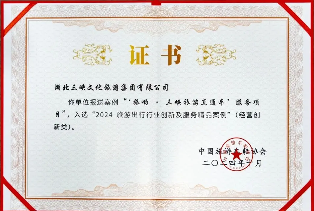 “旅哟·三峡旅游直通车”服务项目获评“2024旅游出行行业创新及服务精品案例”。