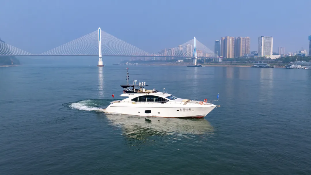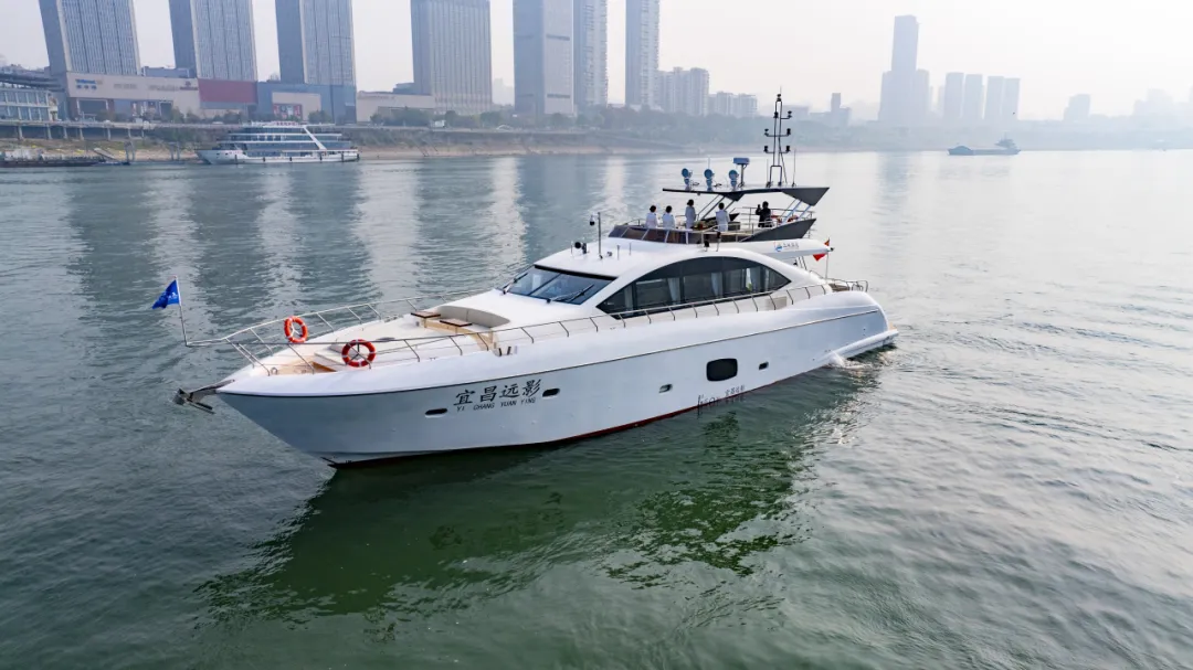 “宜昌远影号”全长25米,设计航速达25km/h,核载40人,最多载客30人(舒适体验建议载客20人以内),性能卓越、安全舒适。单体、单甲板船型,风浪中失速小,稳性和操纵性好;采用双电机/双柴油机(混合动力)、双桨推进装置,实现燃油模式与纯电模式的一键切换,以适应船舶不同航行状况。