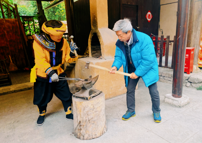 他们兴致勃勃地观摩了古法打铁技艺