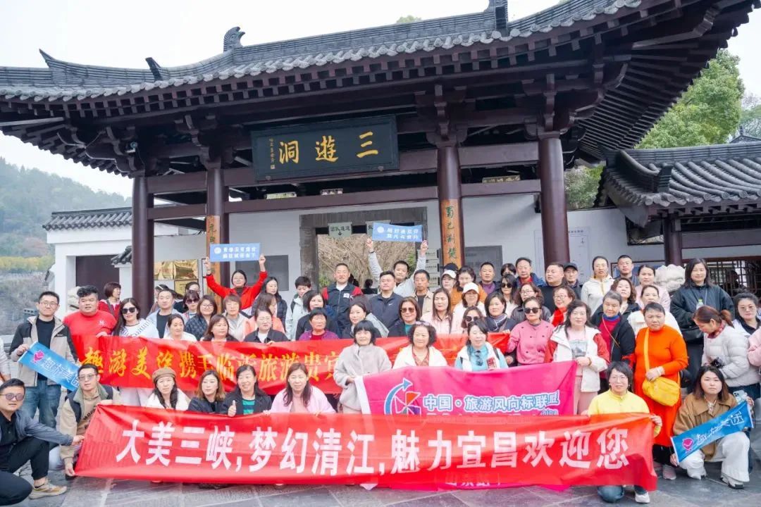 2月28日,来自青岛、烟台、潍坊、淄博、济南、临沂等北方重点客源地的近百家旅行商齐聚腾博会 旗下三游洞风景区,乘船游于“绝版三峡”,体验长江最为秀丽壮美的山水人文之美。