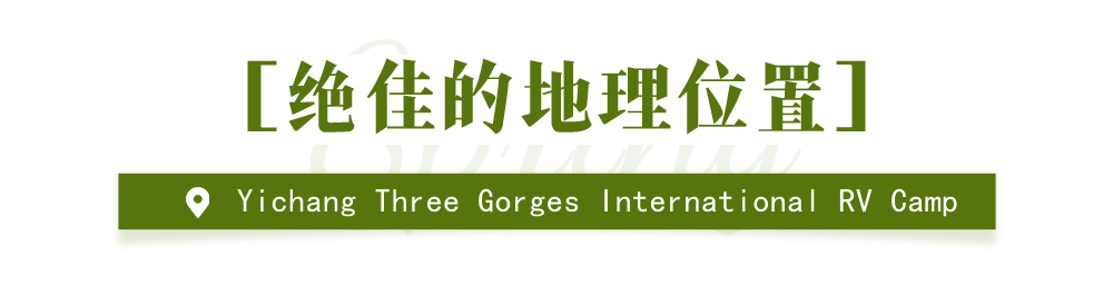 营地位于湖北省宜昌市长江之滨、风景秀丽的西陵峡畔森林公园内,距三游洞景区约6公里,三峡人家风景区约16.8公里,三峡大坝约20公里,以“串珠成链”的方式将三峡大坝、三峡人家、西陵峡风景区等国家AAAA级以上风景区、文旅新地标串联在一起。